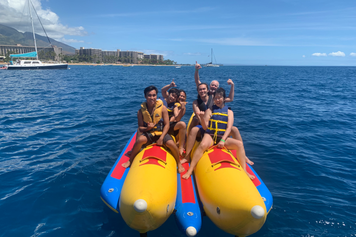 Check-in 15 minutes prior to your departure time on Kaanapali Beach fronting Leilani’s Restaurant at Whalers Village. Look for the Blue UFO Umbrellas on the beach. GPS for Whalers Village: 2435 Kaanapali Pkwy, Lahaina, HI. 96761